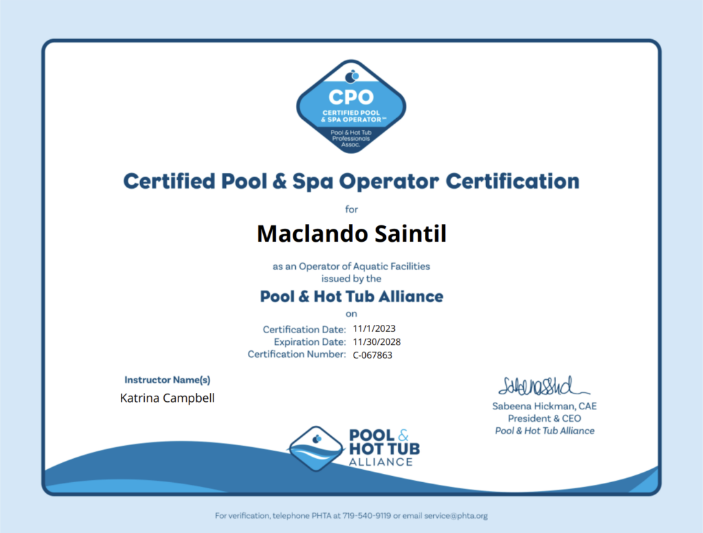 - Maclando Saintil, Bora Bora Provo Pool Service